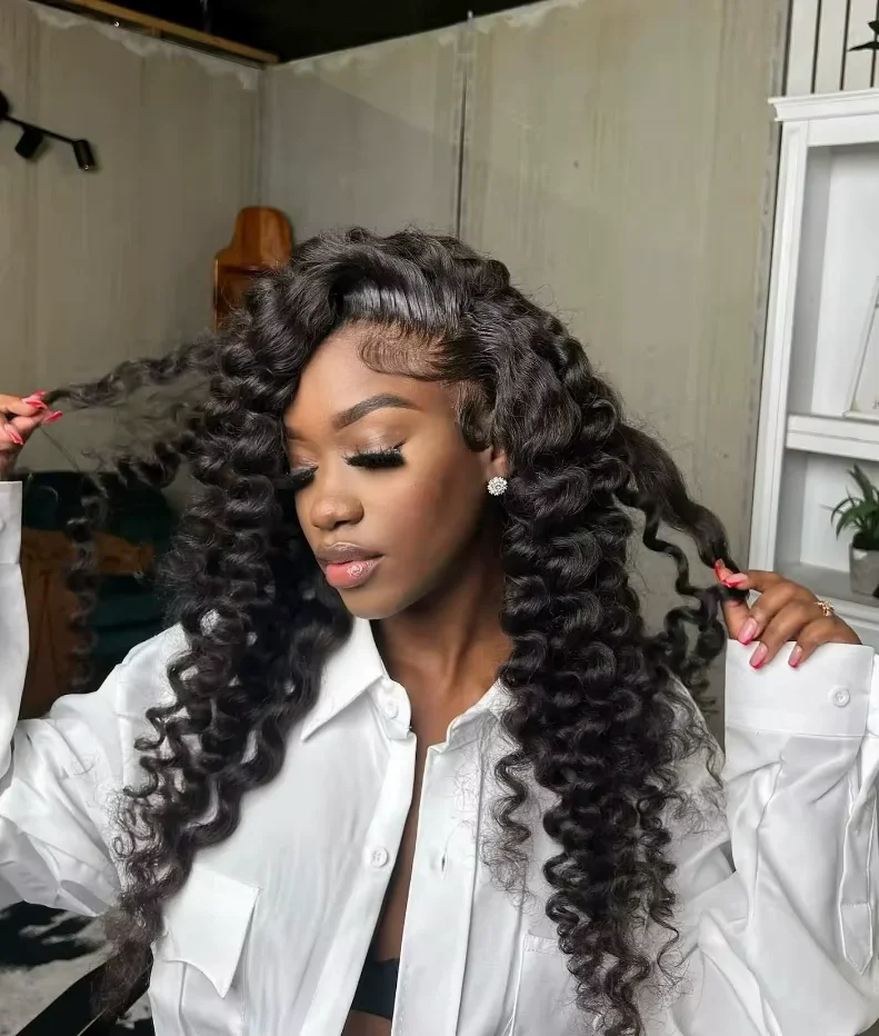 β¨ 40β of pure luxury! HD Lace Deep Wave Wig πββοΈ 100% Human Hair. Natural, soft & flawless!