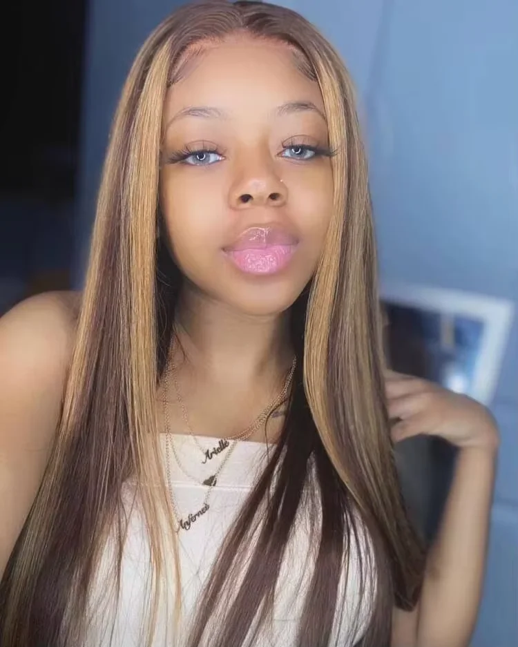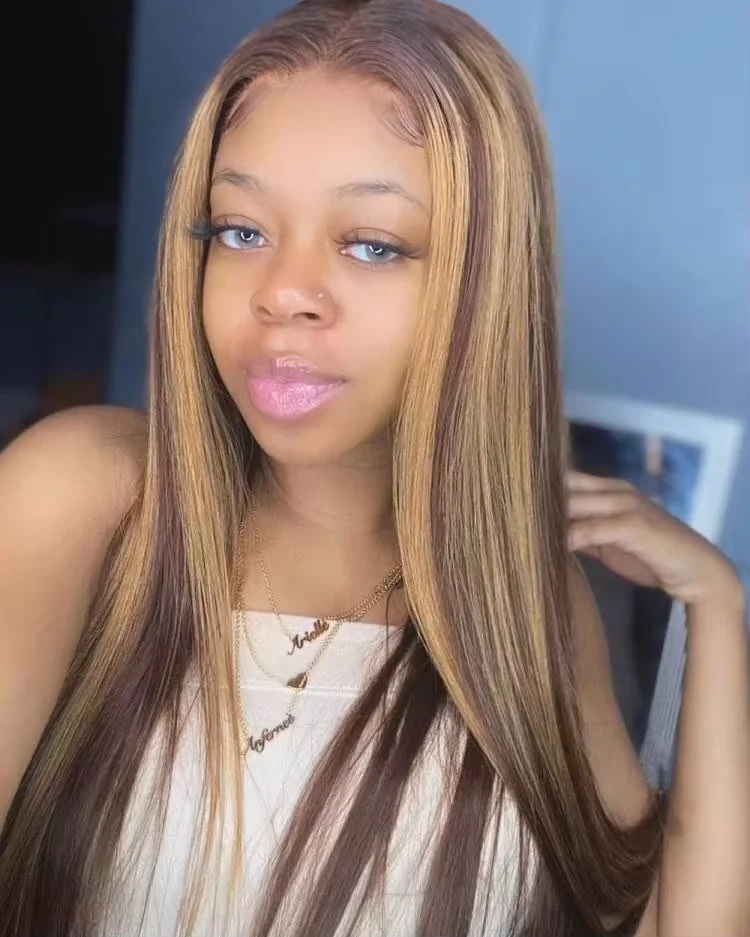 💛 34” Ombre Honey Blonde Wig – Bone Straight HD Lace Front, Natural & Sleek Look