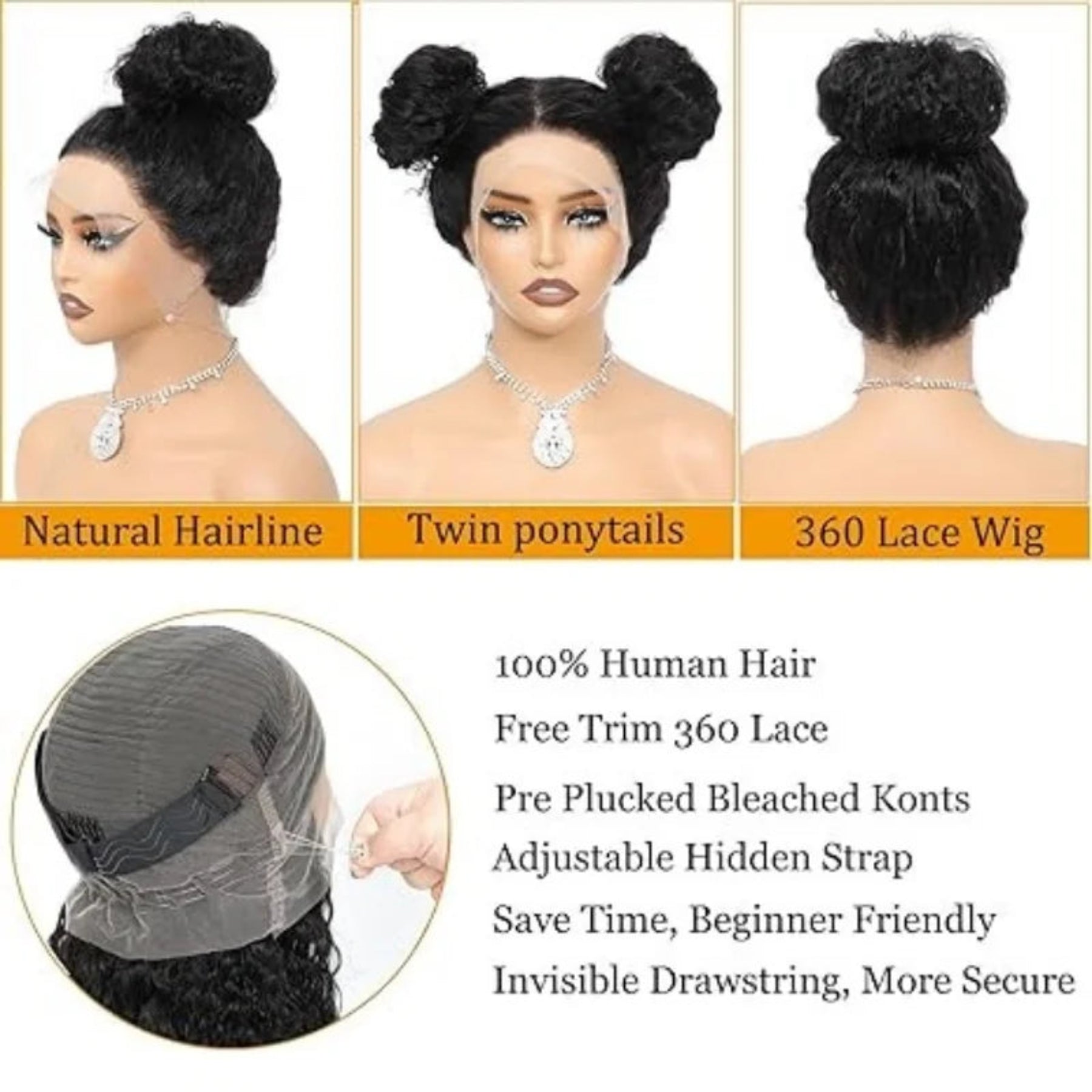 360 Full Lace Wig Invisible Drawstring Deep Wave Frontal Wig Curly Human Hair