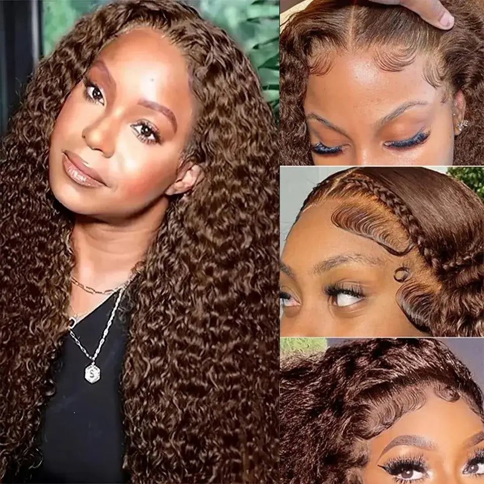 13x6 Transparent Lace Deep Wave Human Hair Wig – 30" Brown