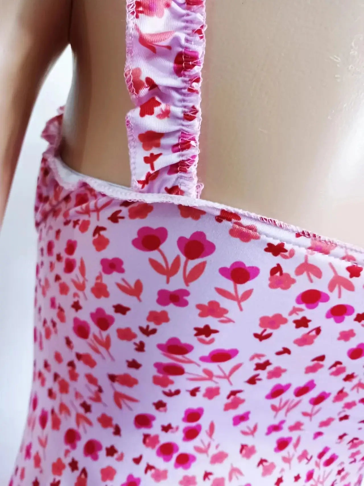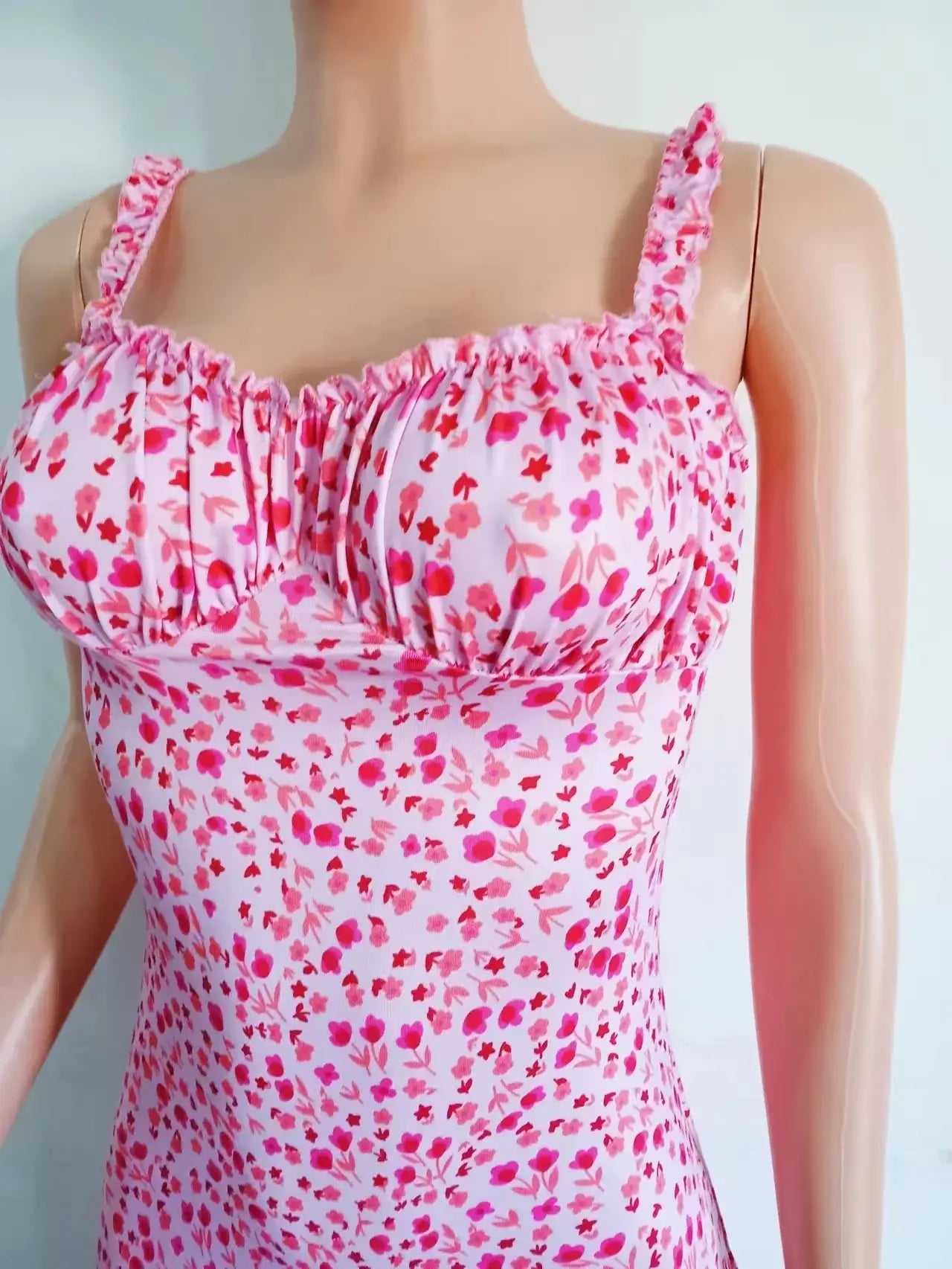 Floral Suspender Split Mini Dress 2024 Summer New Slim Sleeveless Patry Beach Style Spaghetti Strap Dress Women Clothes