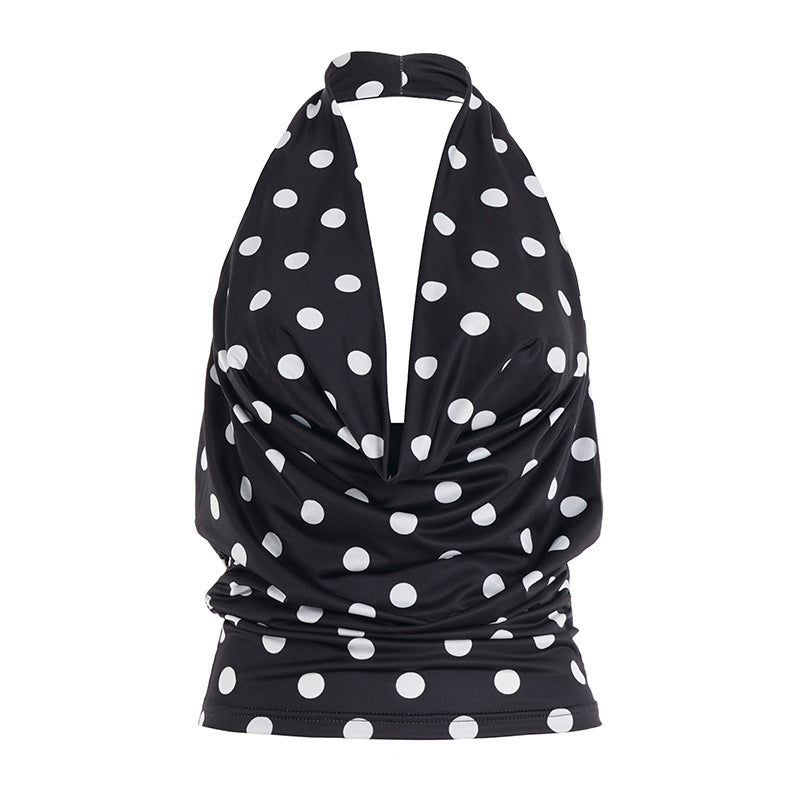 Halter Backless Polka-dot Cinched Women's Waistcoat