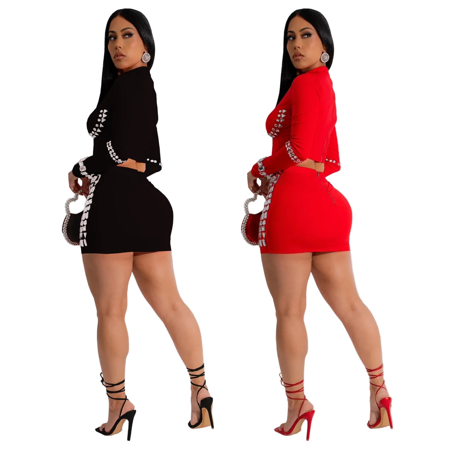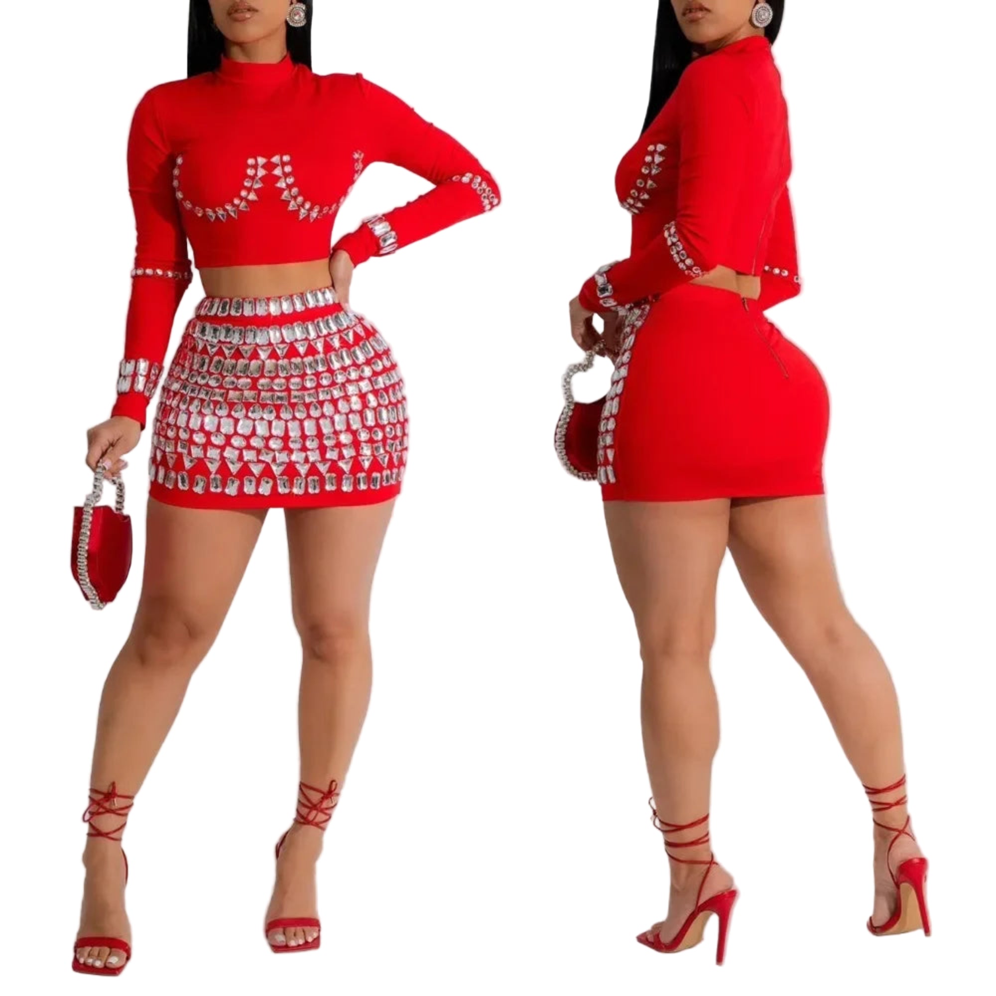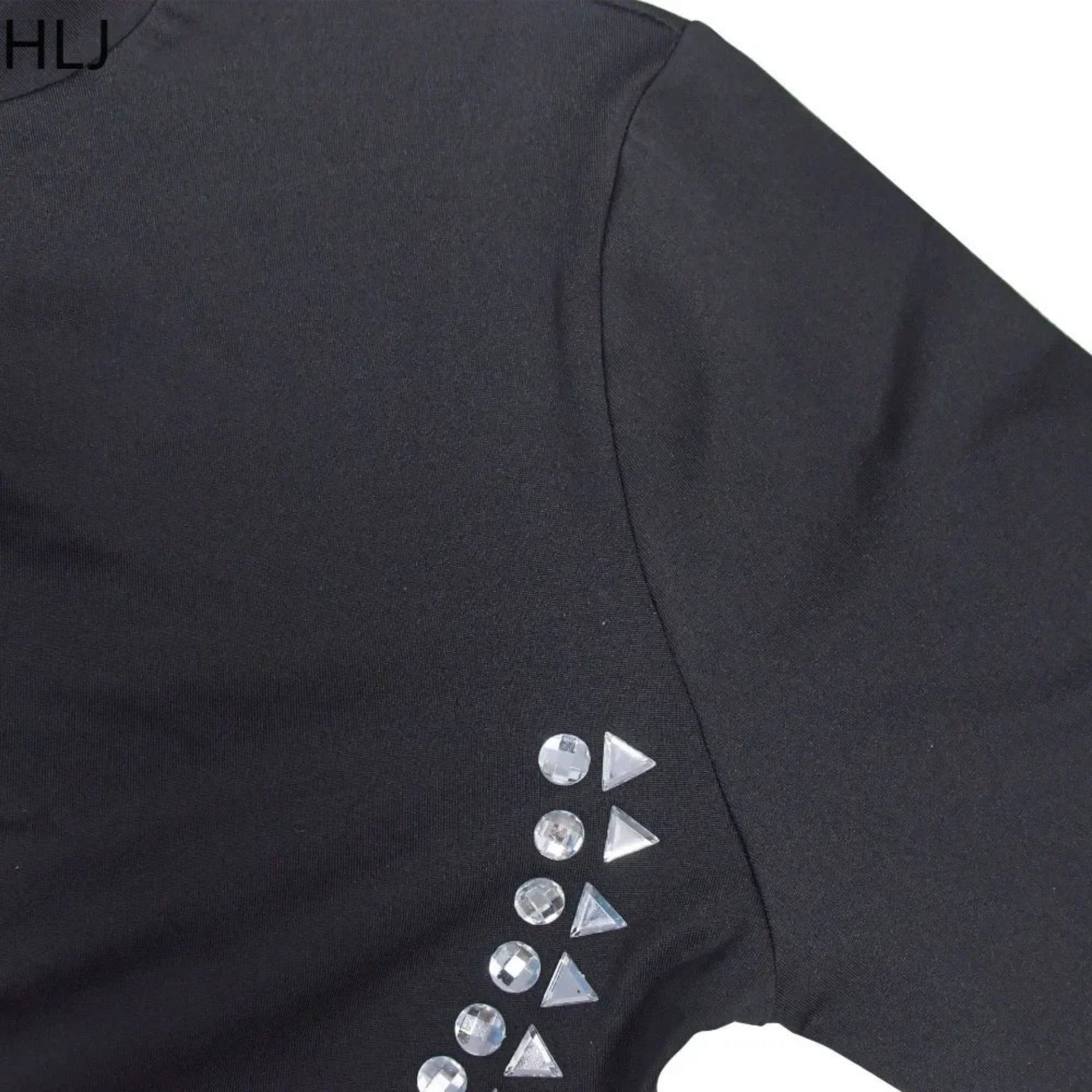 HLJ Fashion Luxury Rhinestone Party Club Mini Skirts Two Piece Sets Women
