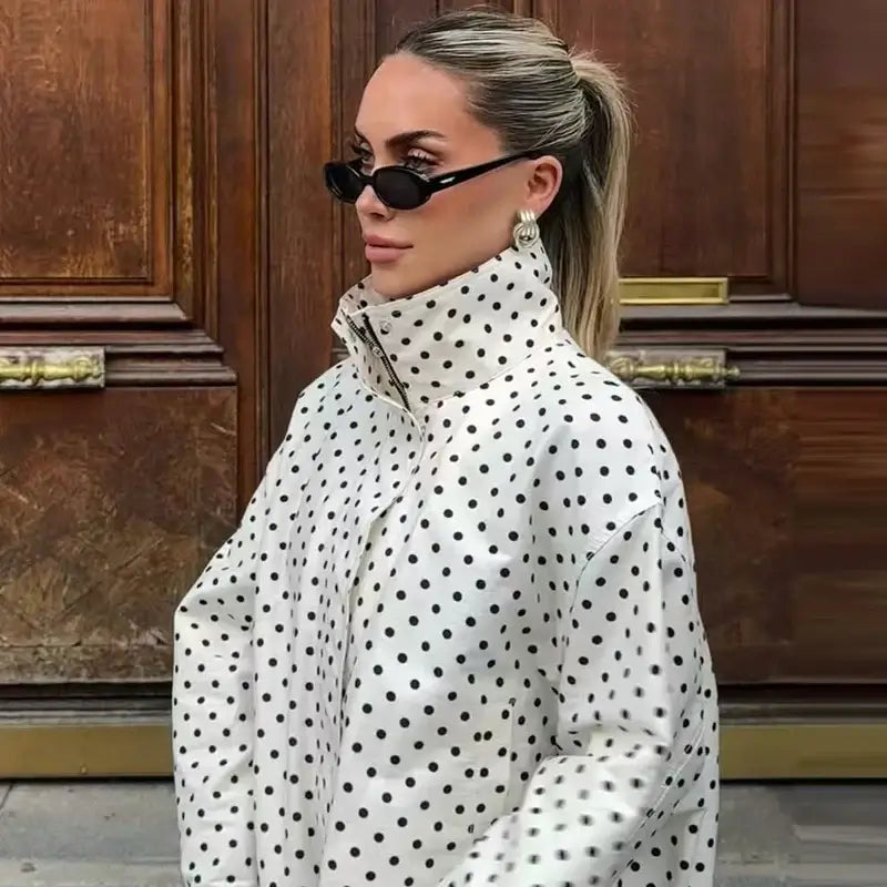 HXAO Polka Dot Bomber Jacket Women's Jackets Demi-Season Oversized Long Sleeve Top Outerwear Aviator Plus Size Zip Up Crop Coats