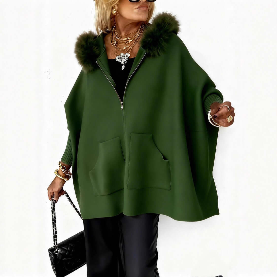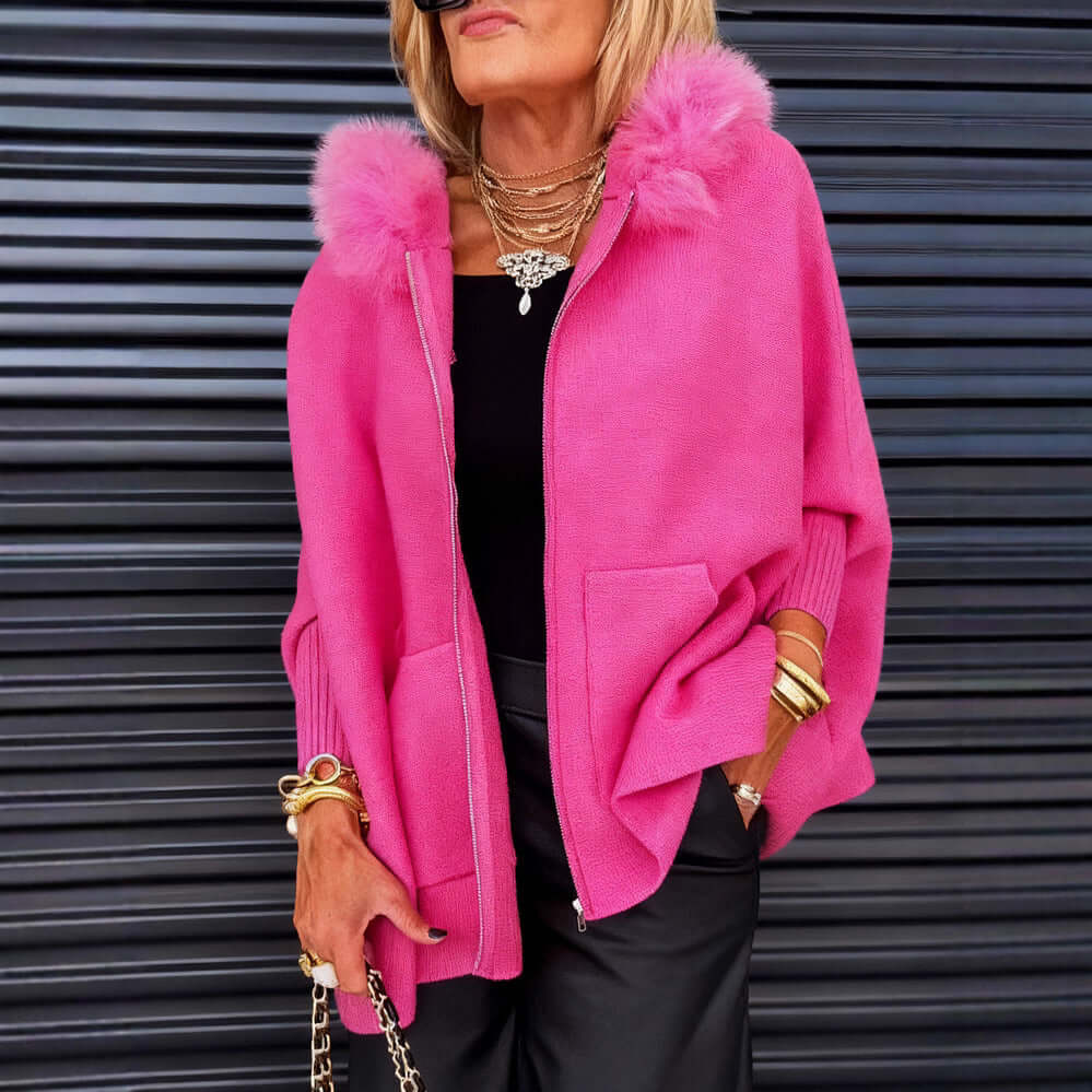 Ins Plush Hooded Cardigan Fashion Warm Pockets Zip-up Knitted Jacket Casual Outerwear Batwing Sleeve Sweater Women's Clothing