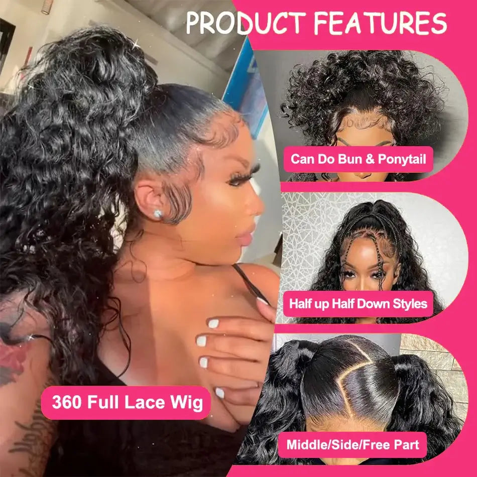 🔥 360 HD Lace Deep Curly Wave Wig – 200% Density, Preplucked & Glueless | Invisi Strap Water Wave Human Hair Wig