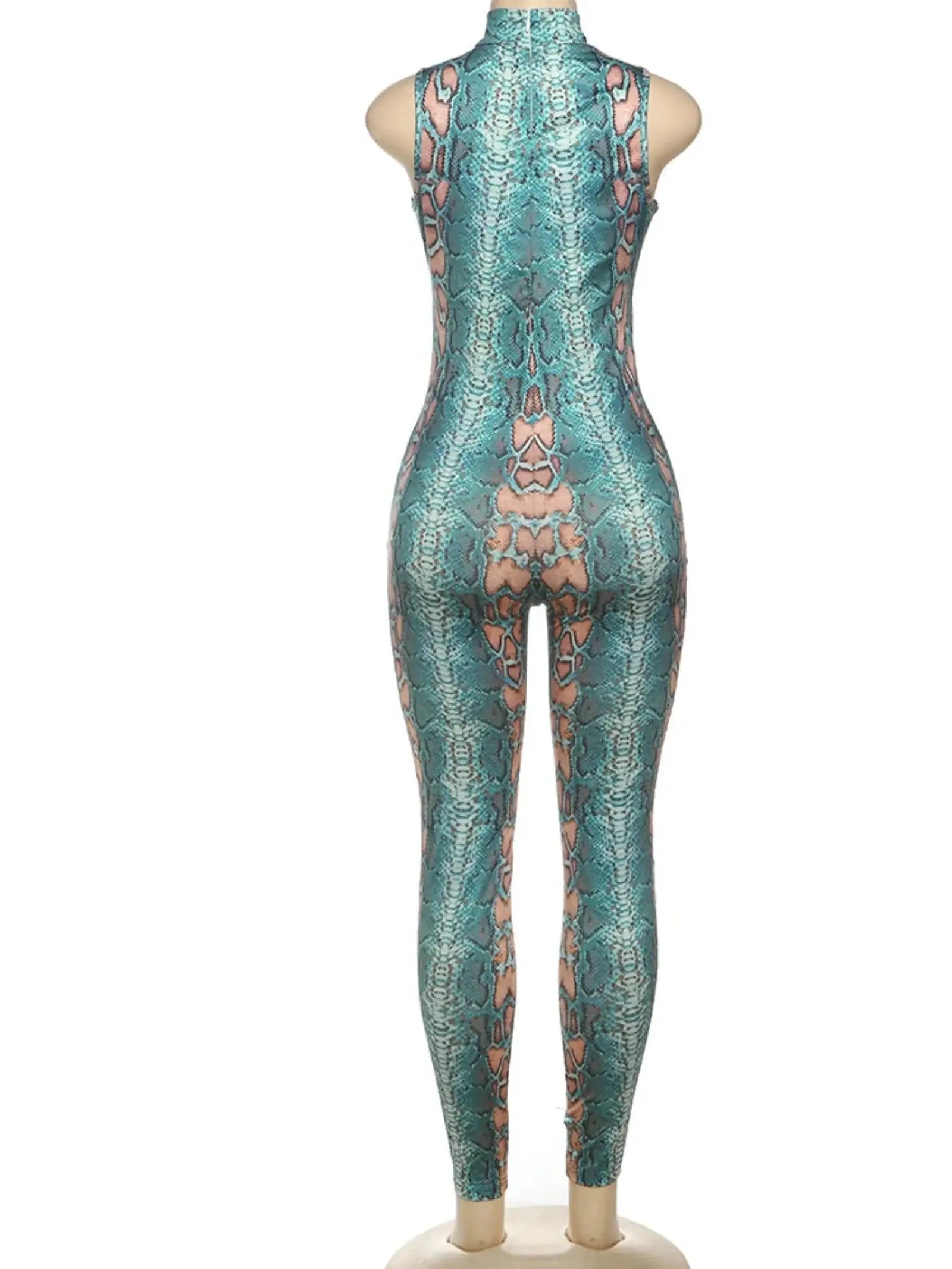 Snake Print Halter Backless Jumpsuit – Slim Clubwear