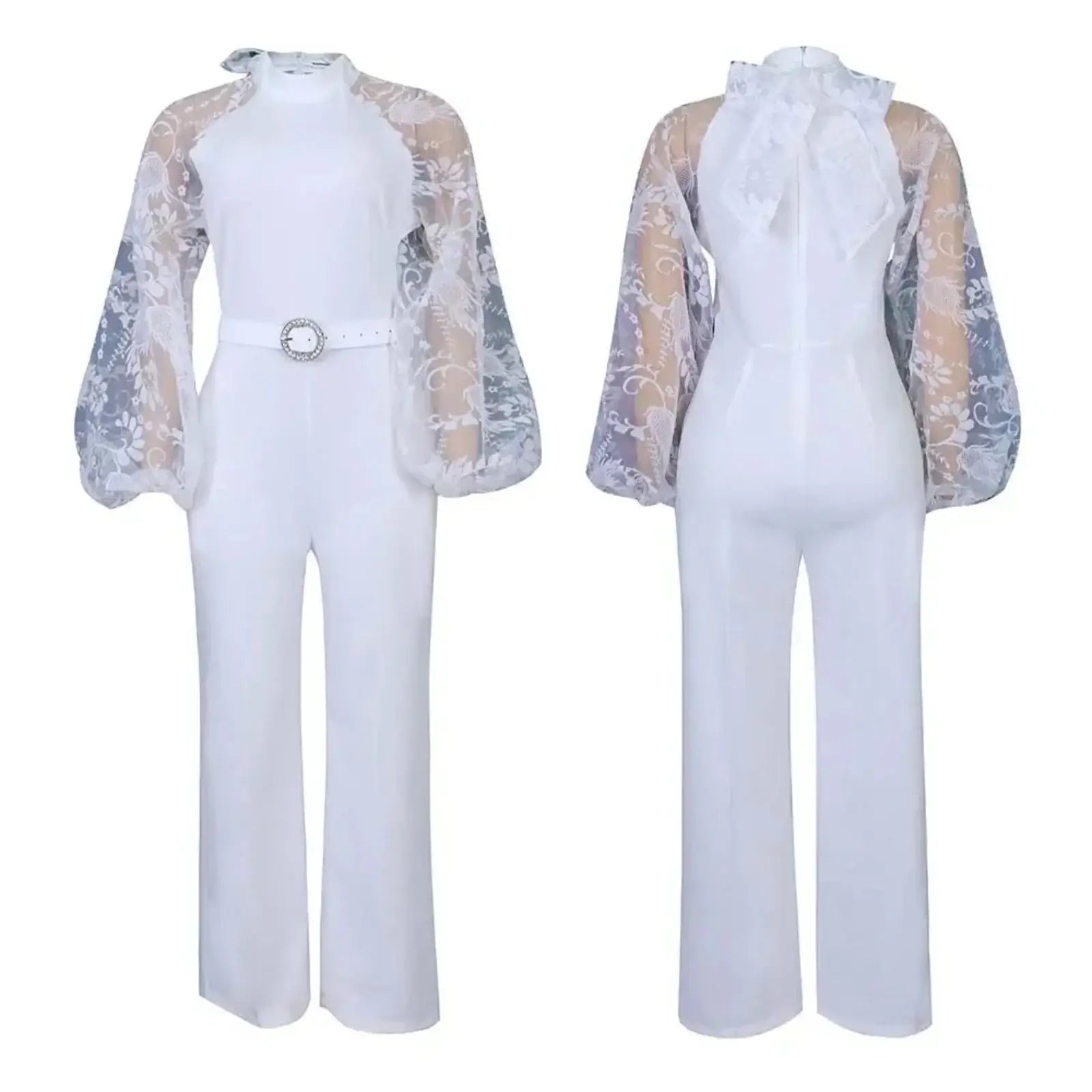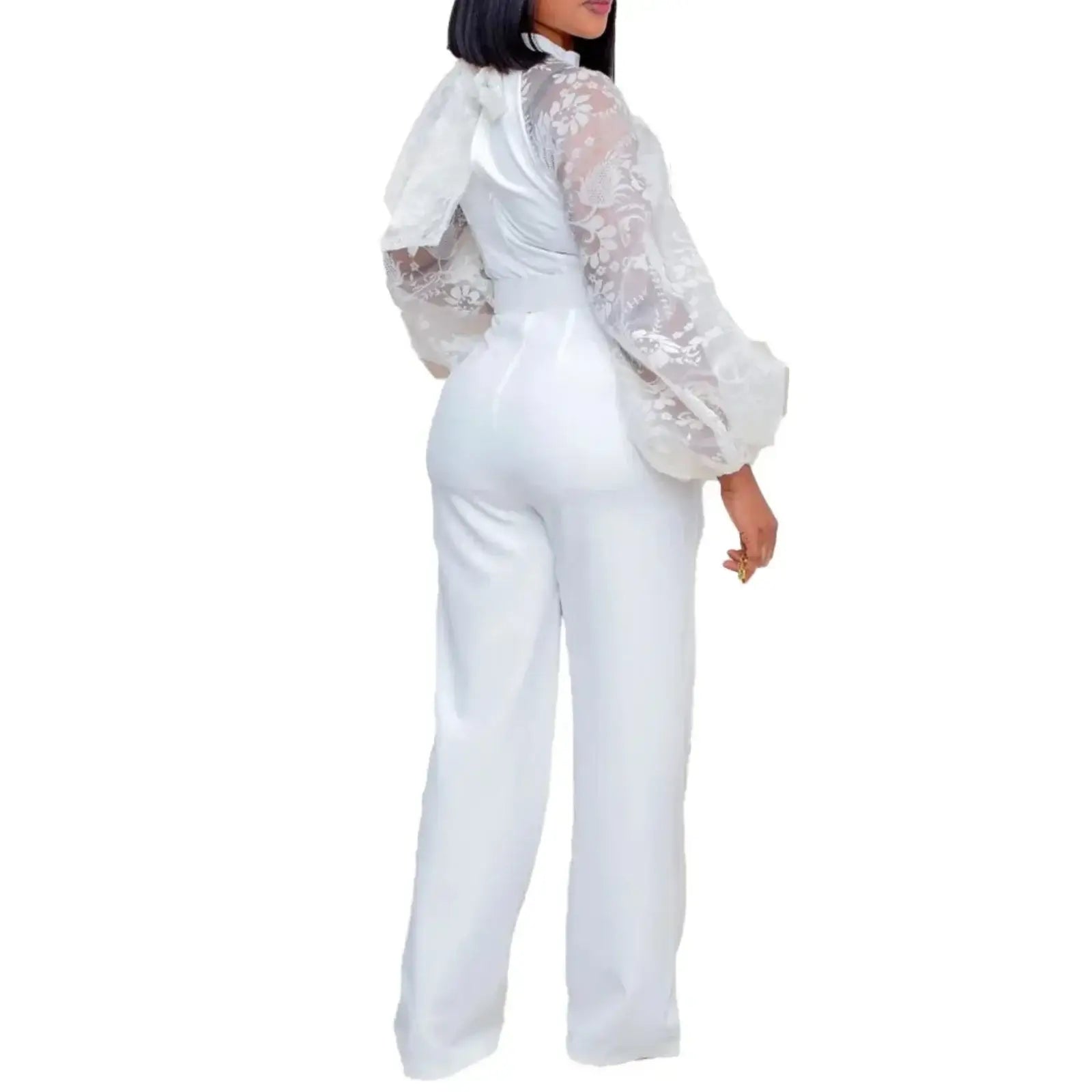 White Mesh Lace Jumpsuit for Women – Y2K Long Sleeve Romper