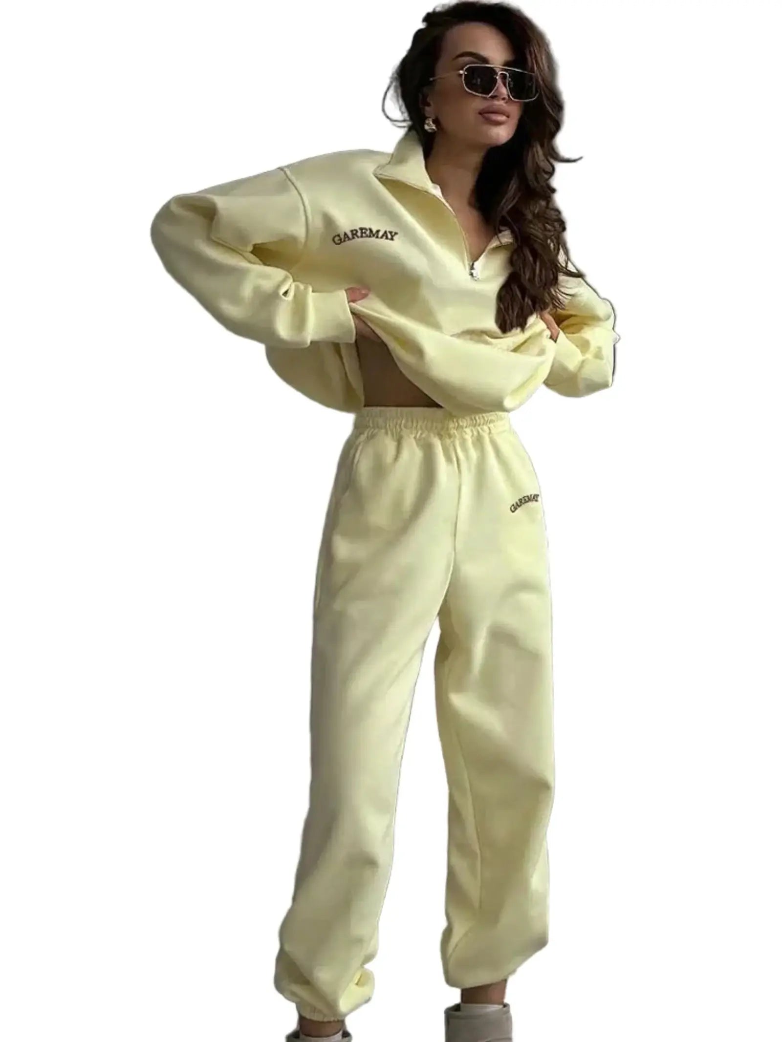 Spring Women's Tracksuit Set - Pink & Yellow Oversized Style