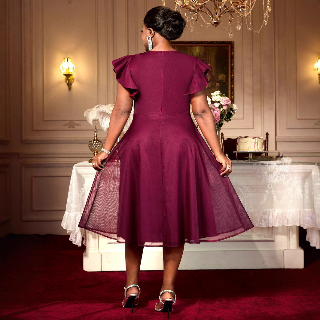 Summer Mesh Butterfly Sleeve Ruffles Party Wedding Guest Elegant Dress