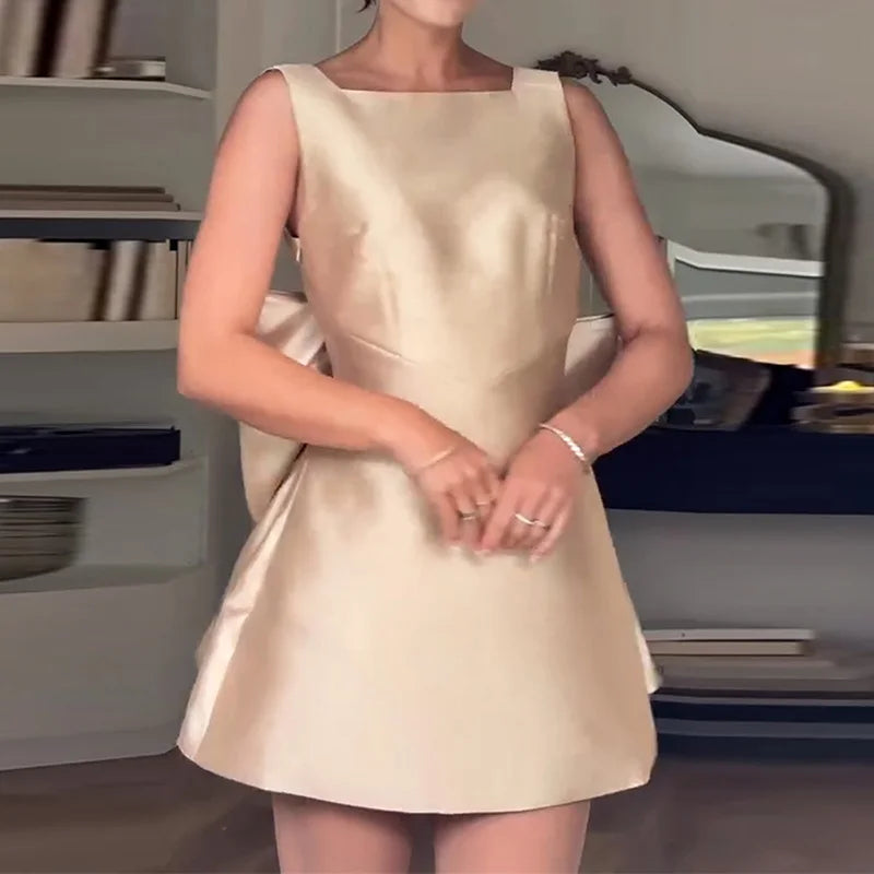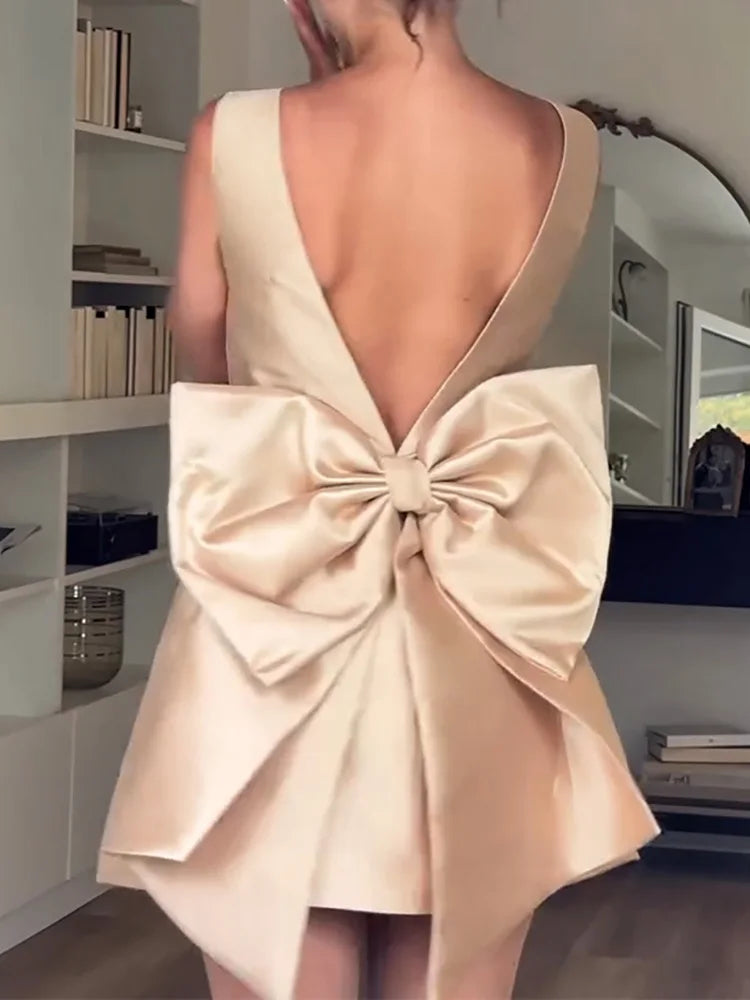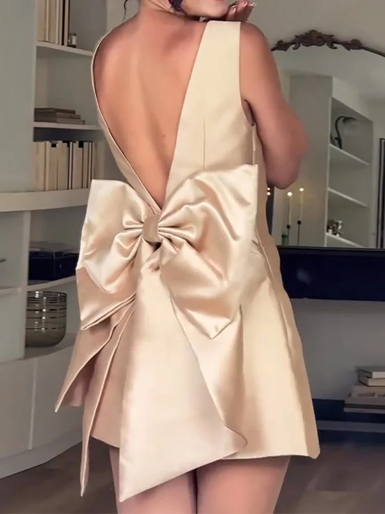 Summer Backless Bow Patchwork Sleeveless Mini Dress