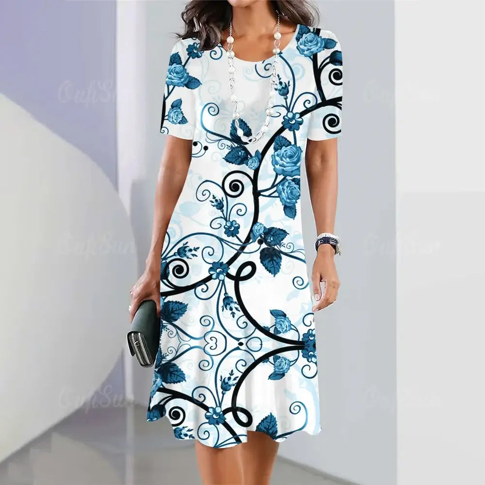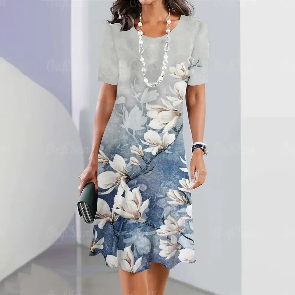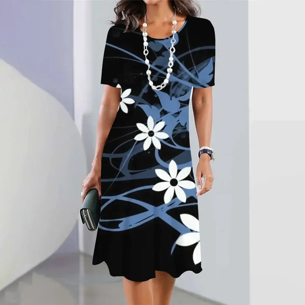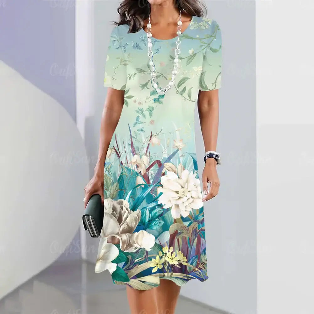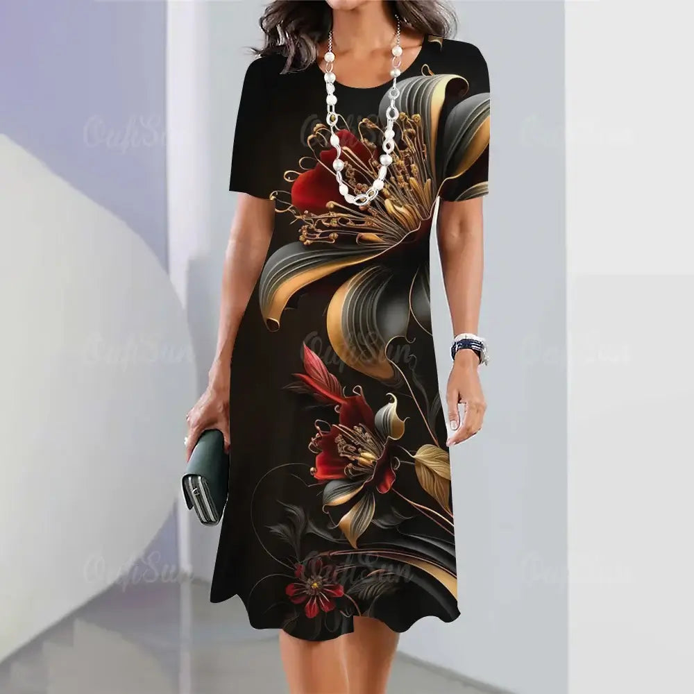 Summer Women's 3D Floral Print Dress - Elegant A-Line Style