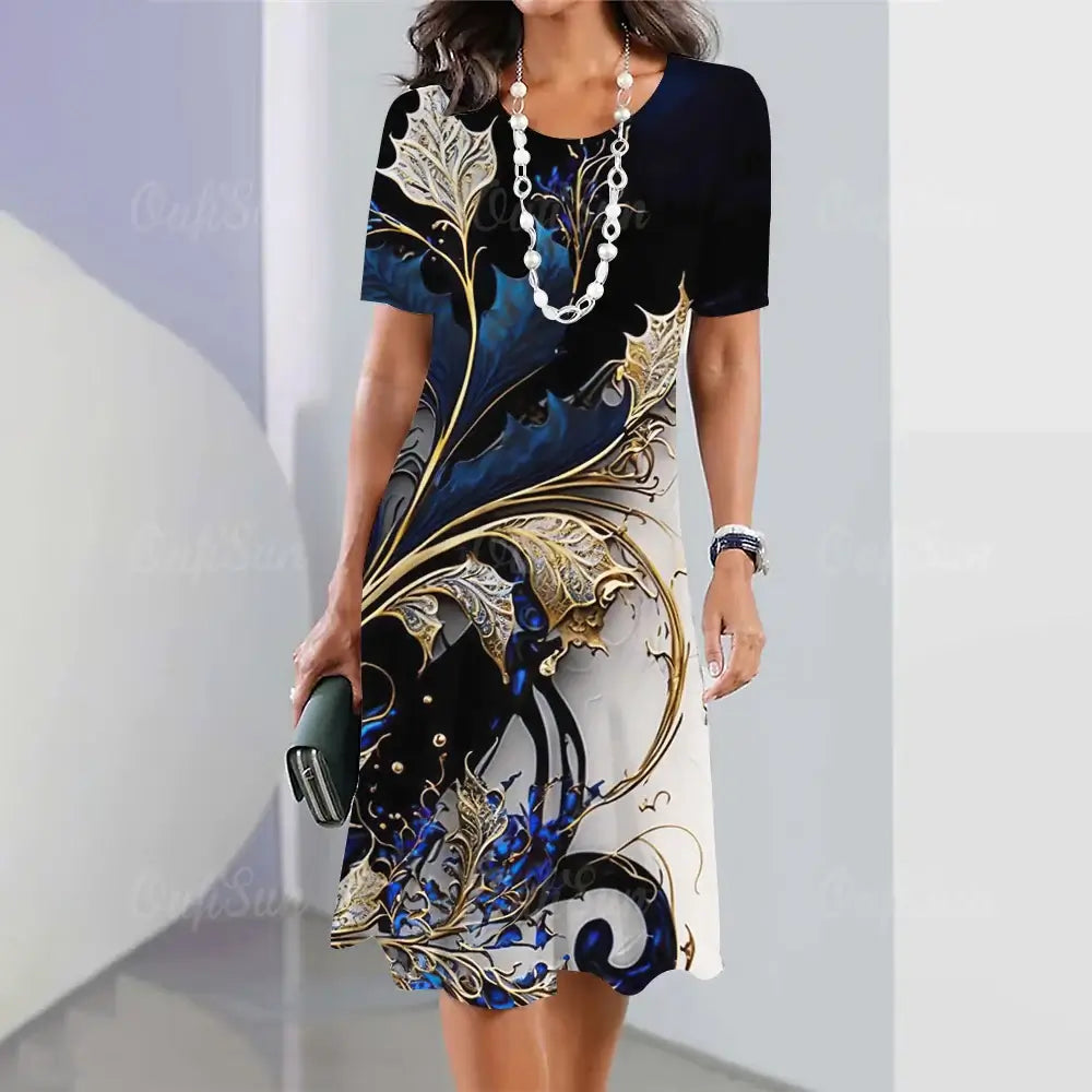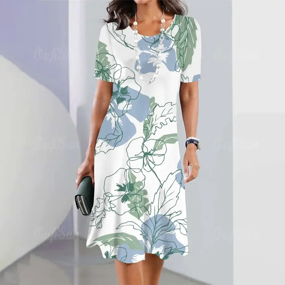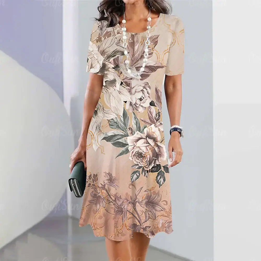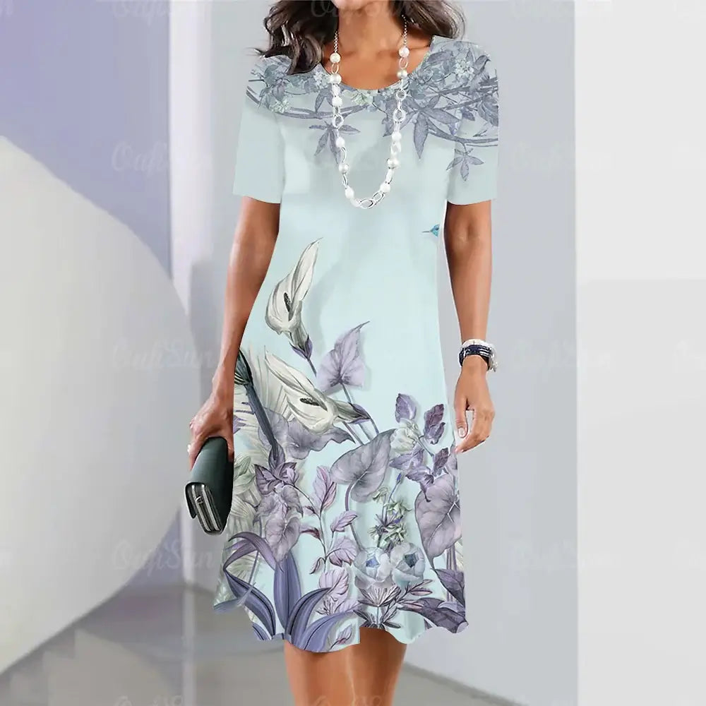 Summer Women's 3D Floral Print Dress - Elegant A-Line Style