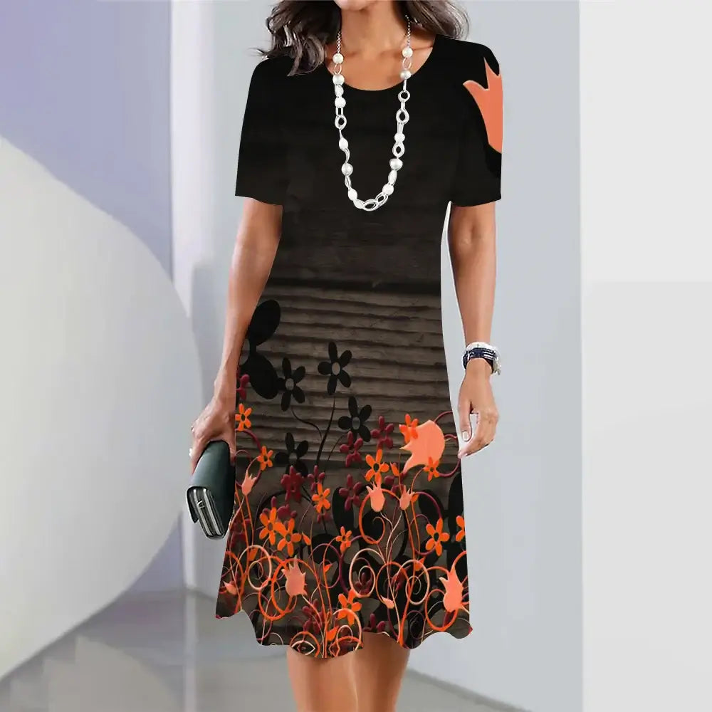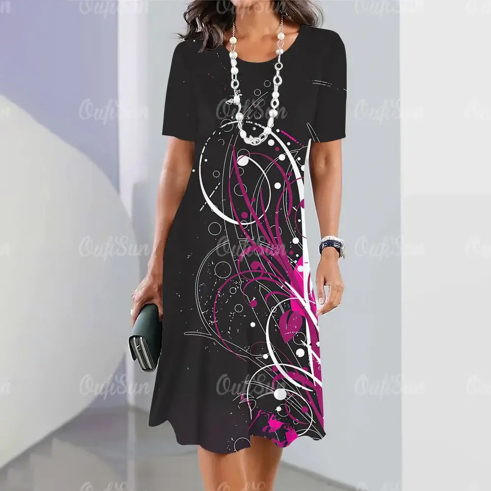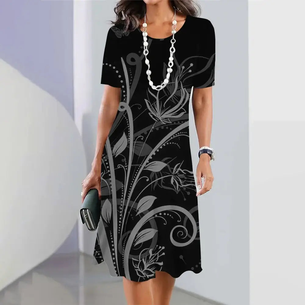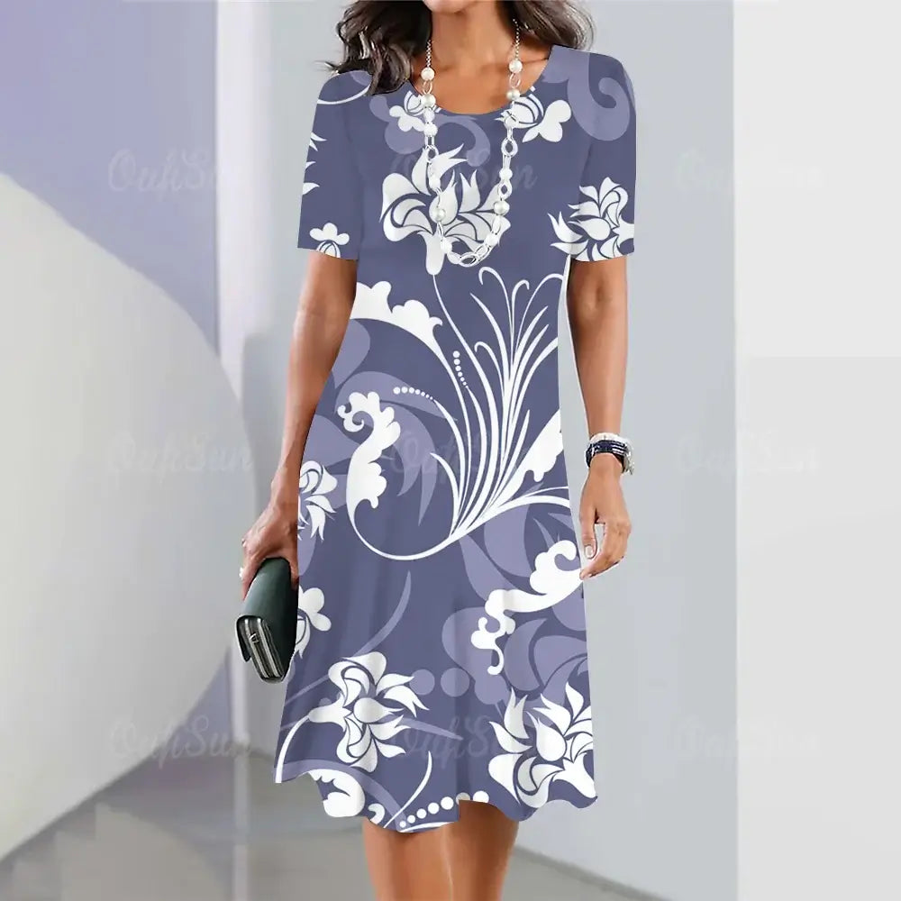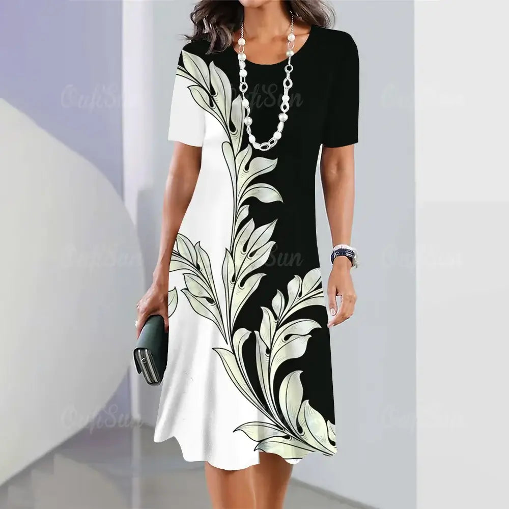 Summer Women's 3D Floral Print Dress - Elegant A-Line Style