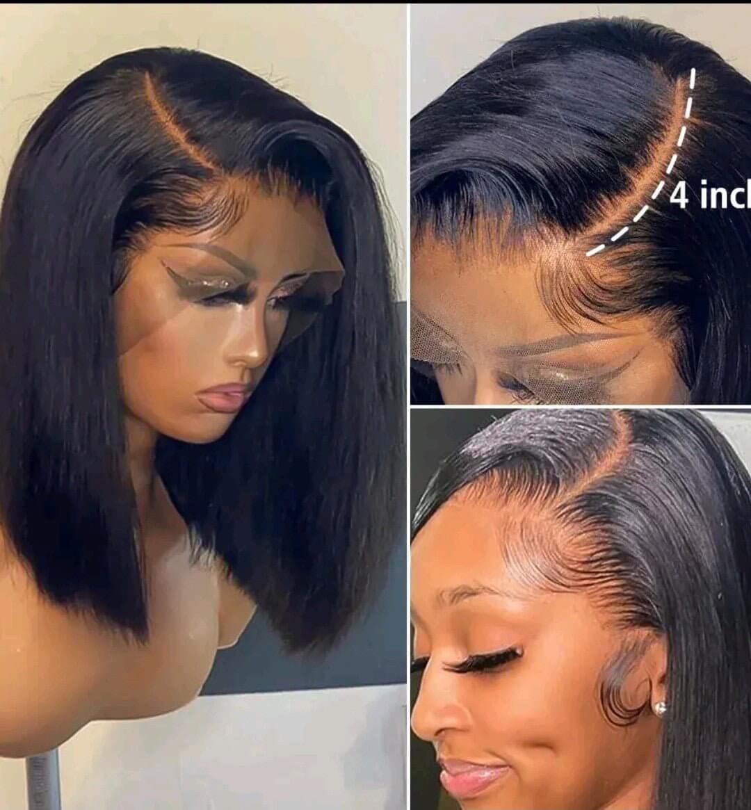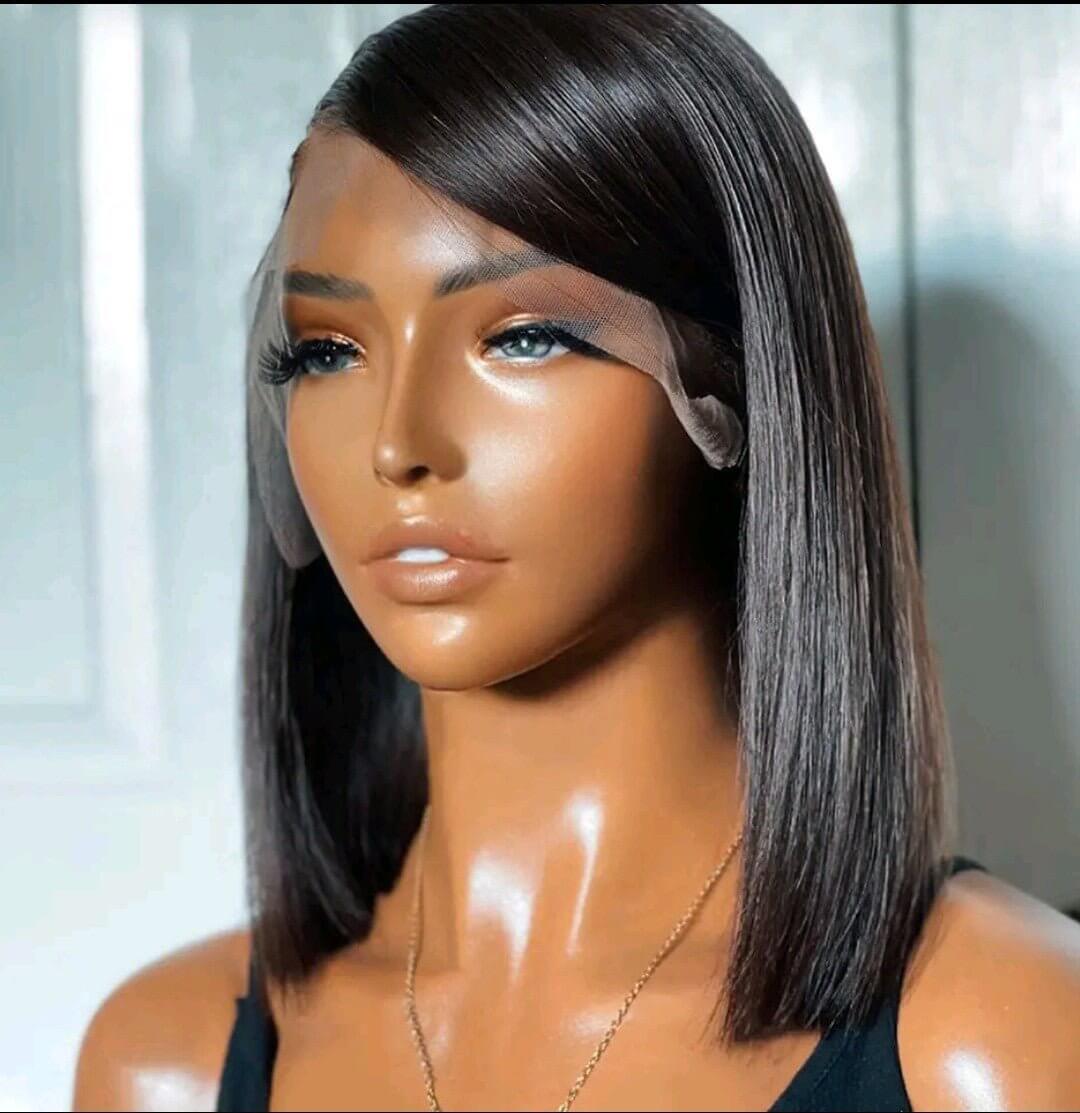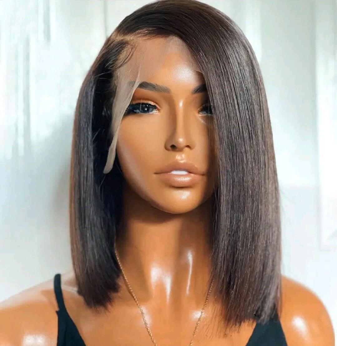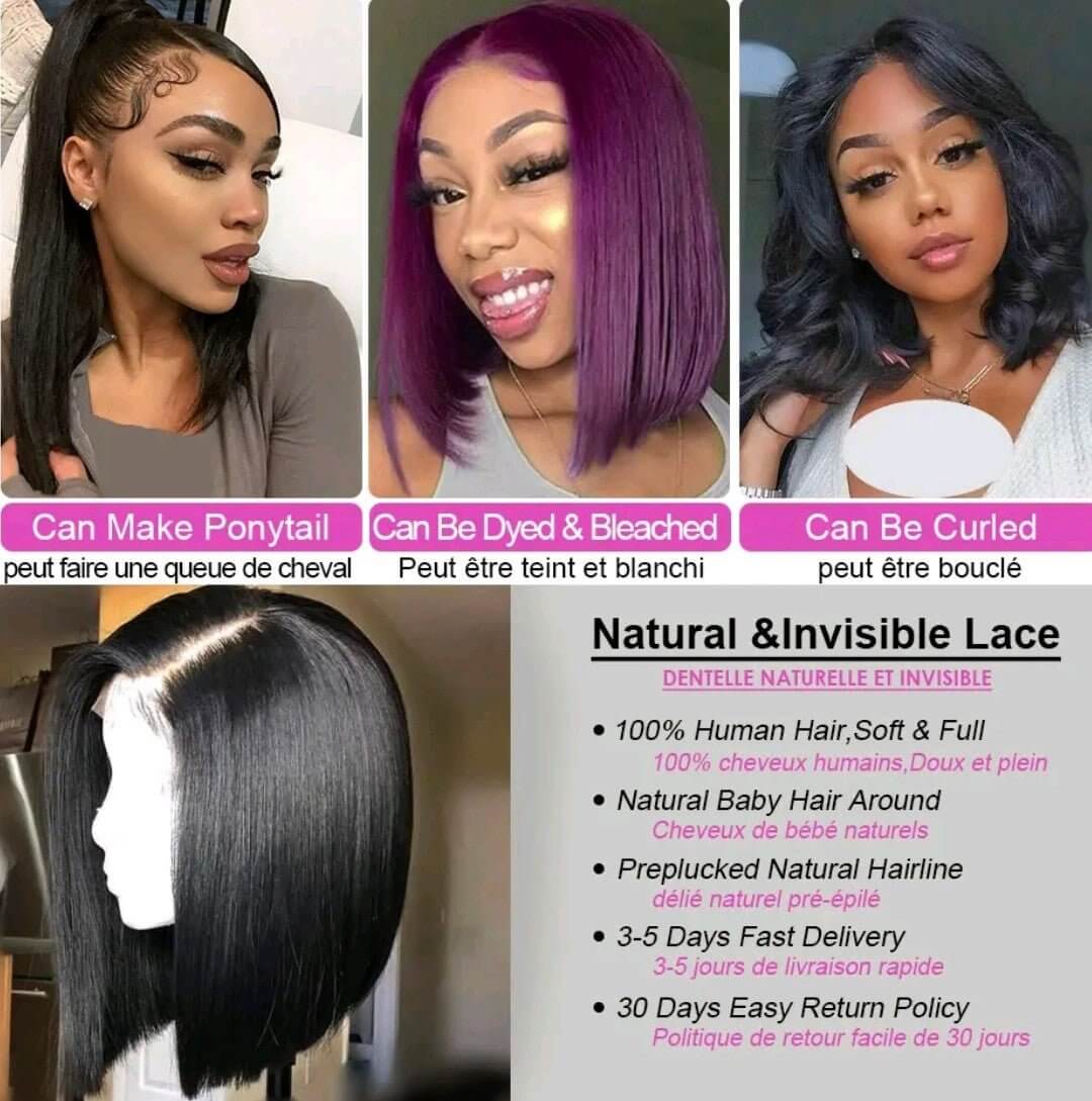 human hair wigs glueless 13×4 Bob lace wig - Straight Hair Natural look, pre -Plucked With Baby Hair