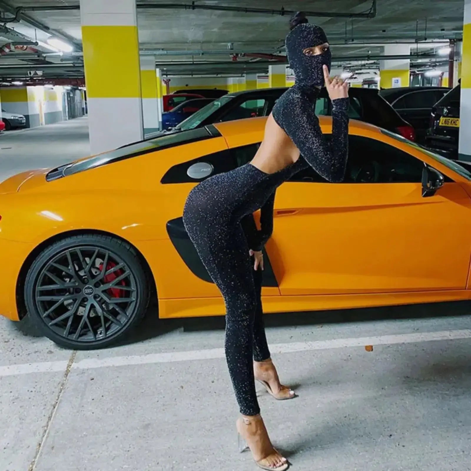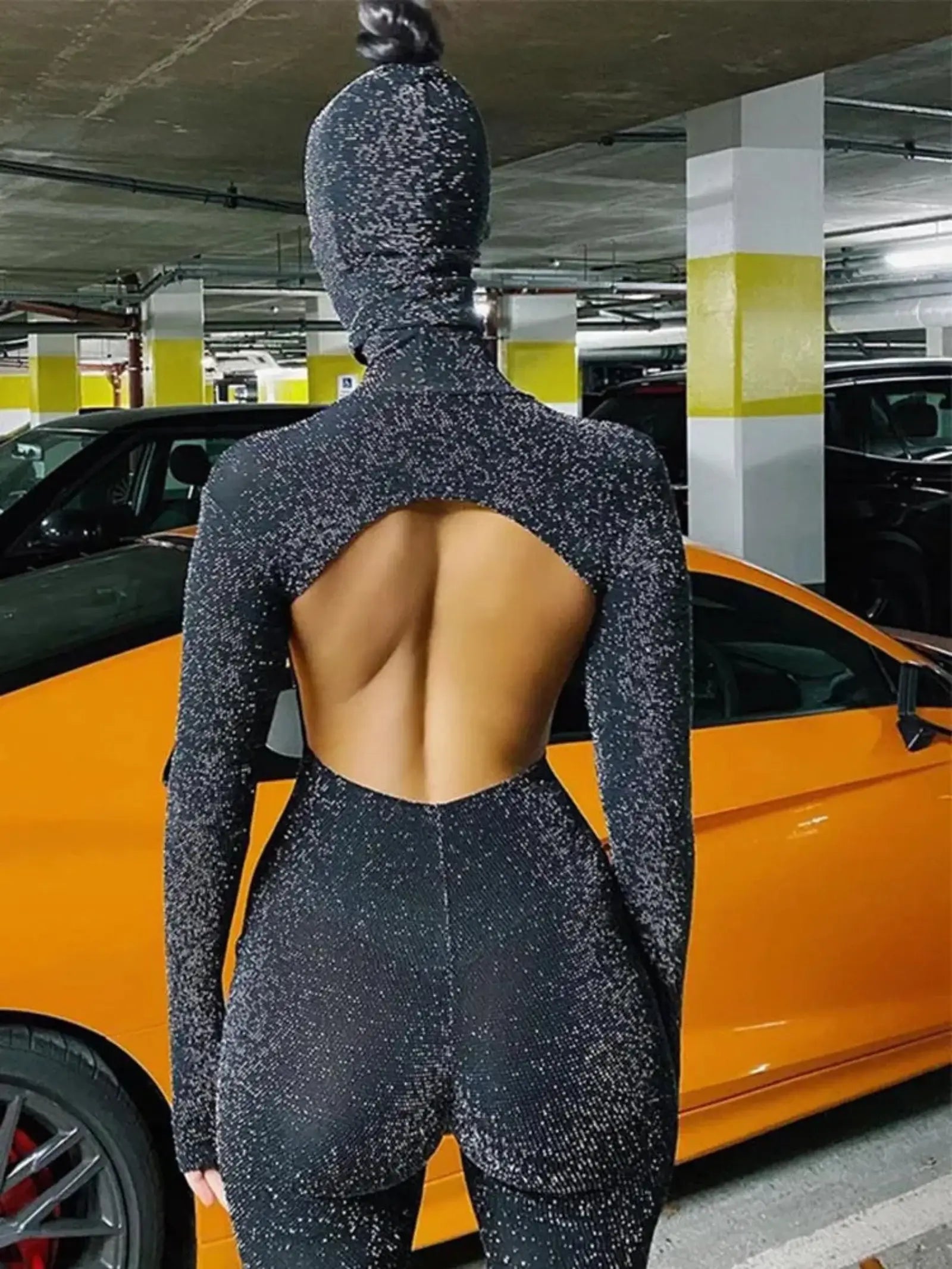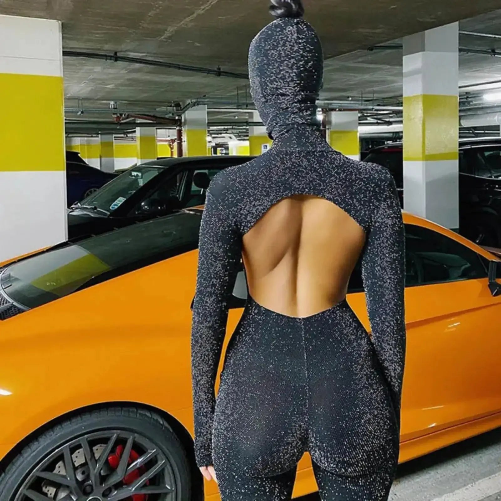Black Backless Bodycon Jumpsuit - Women's Streetwear 2025