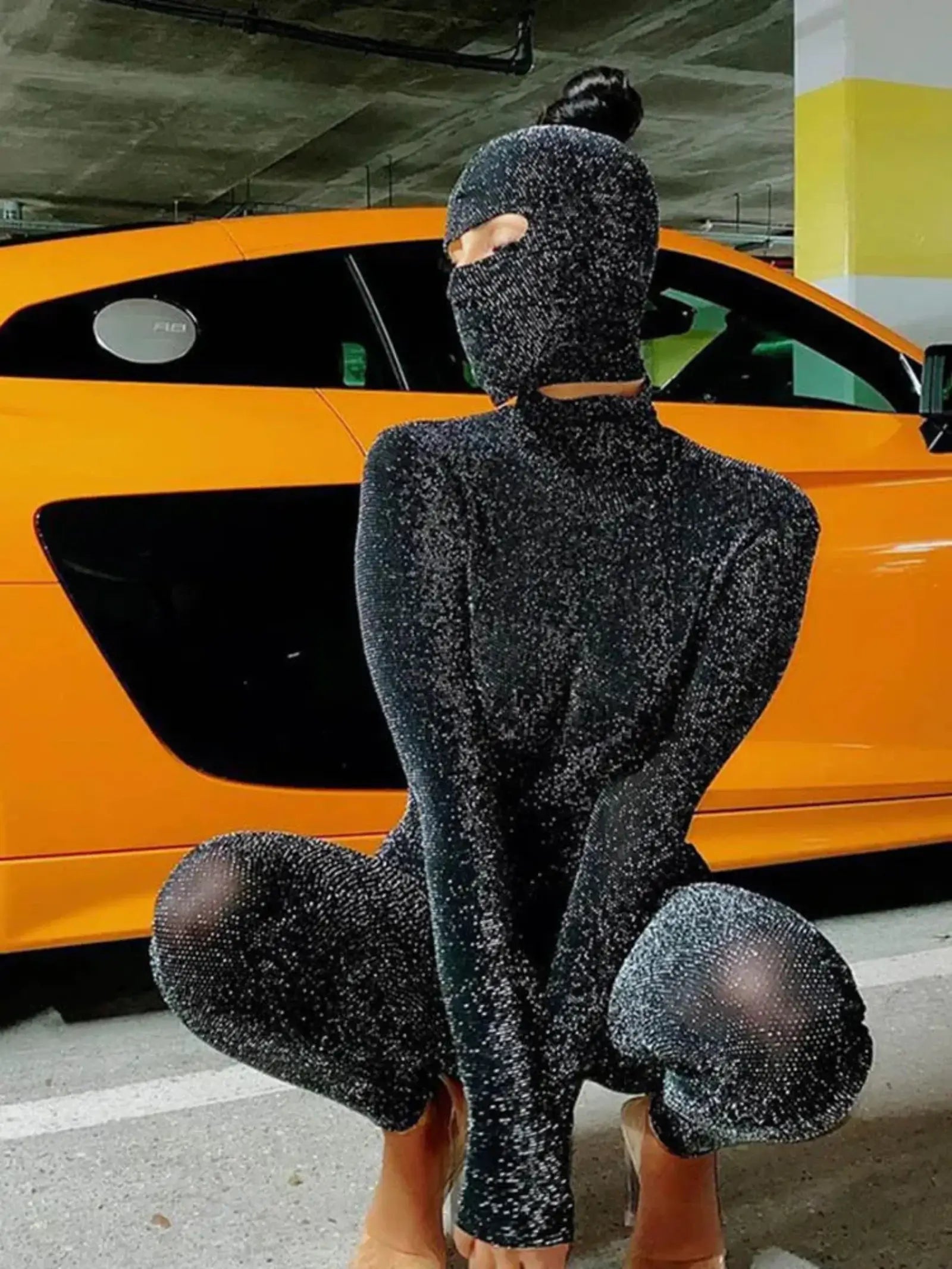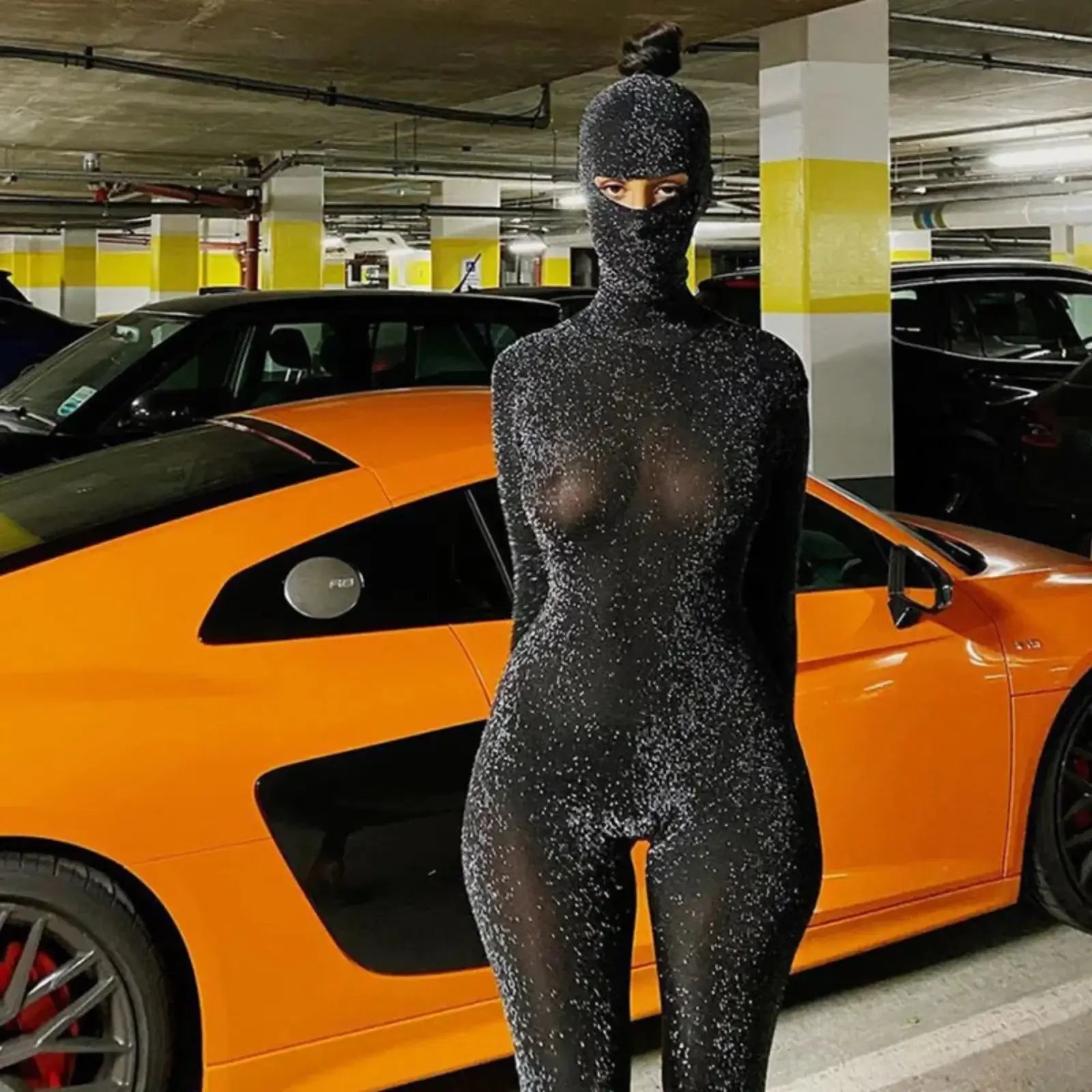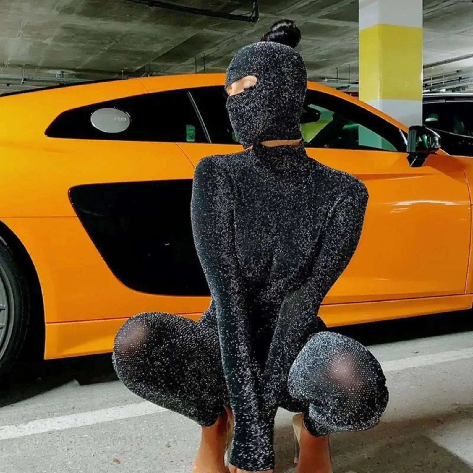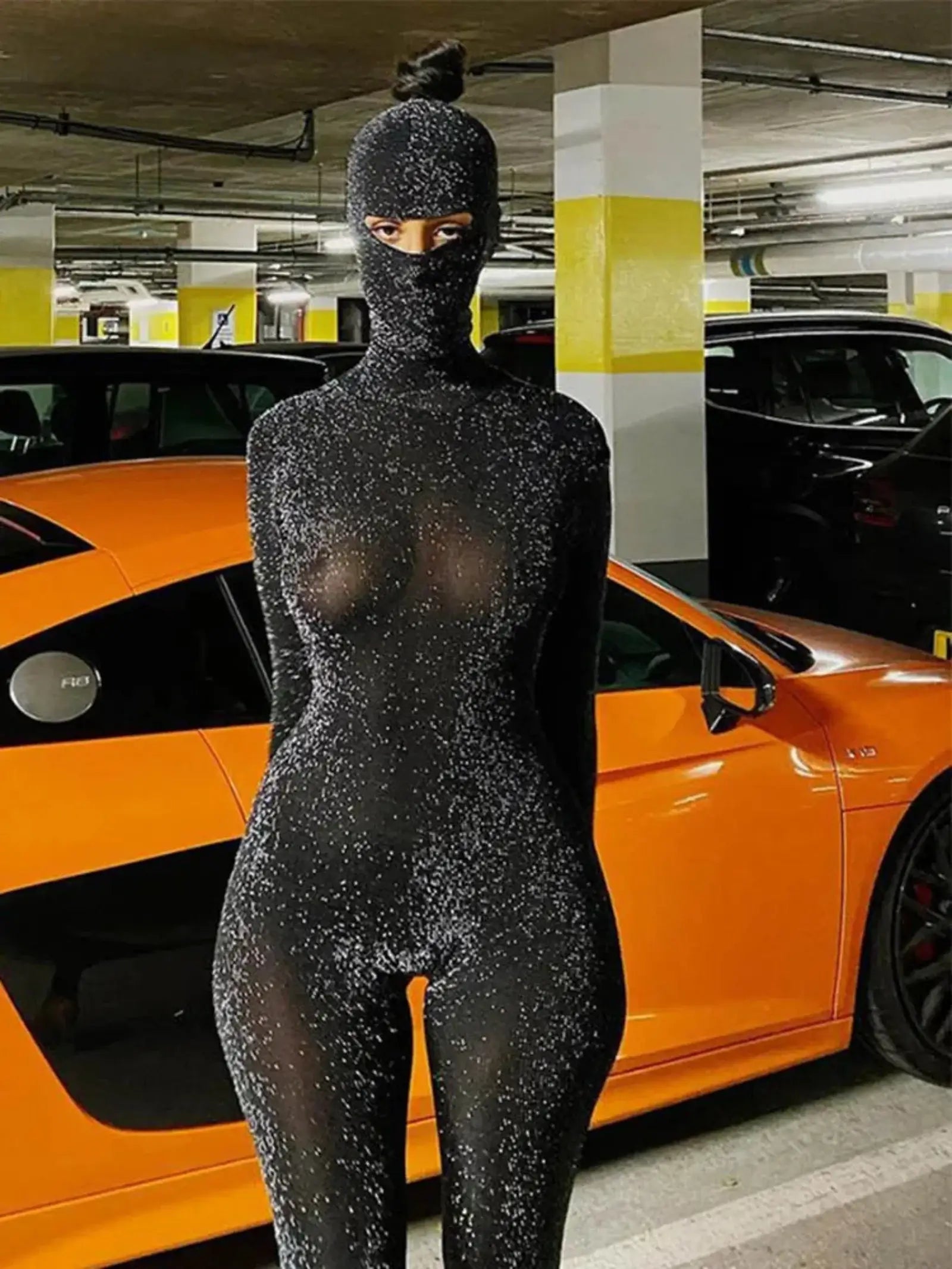 Black Backless Bodycon Jumpsuit - Women's Streetwear 2025