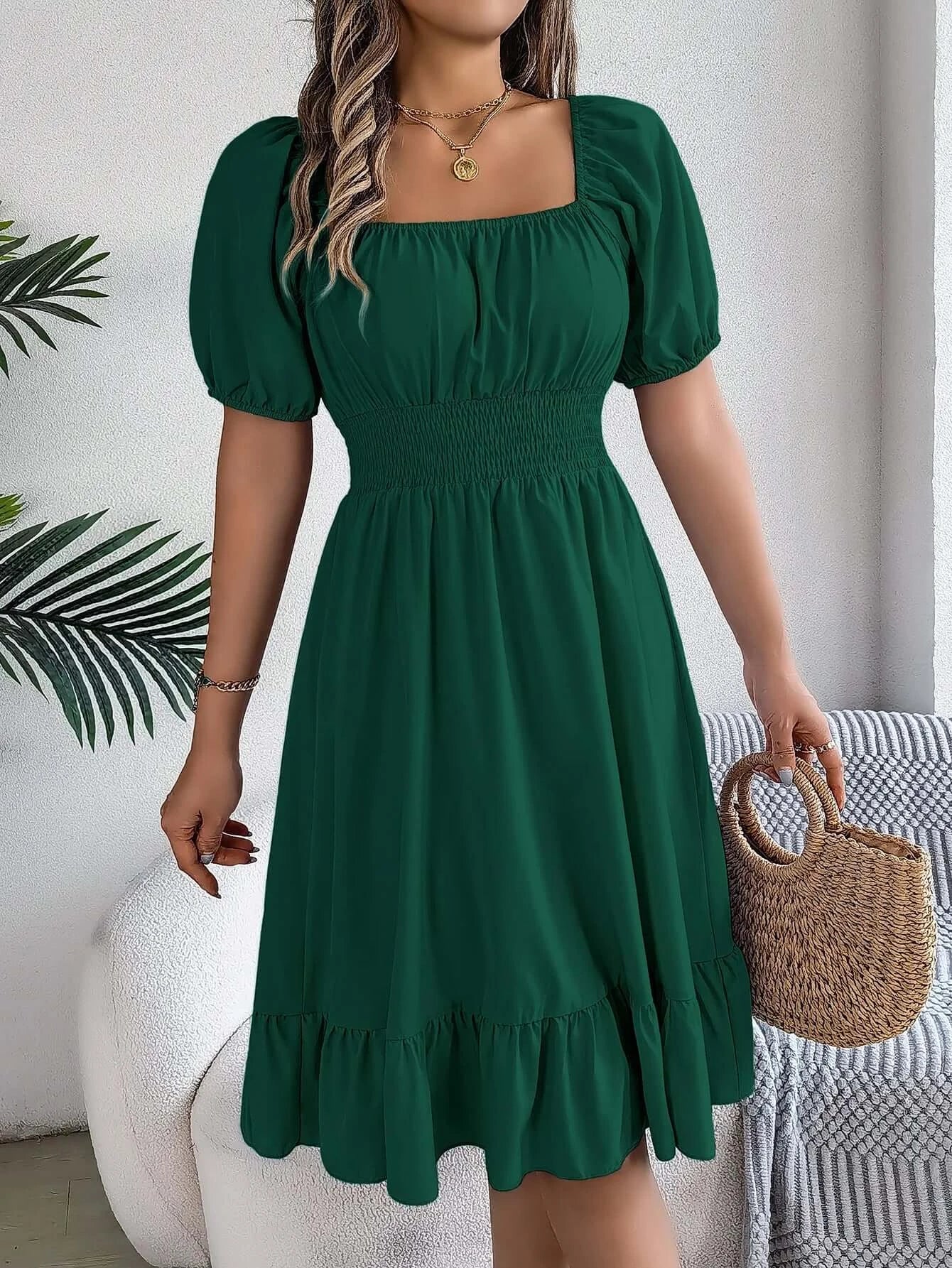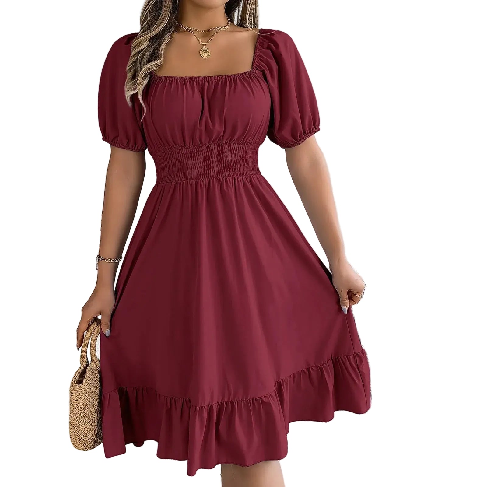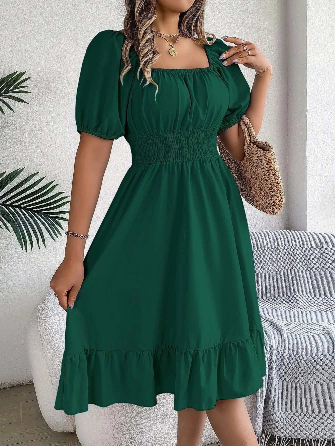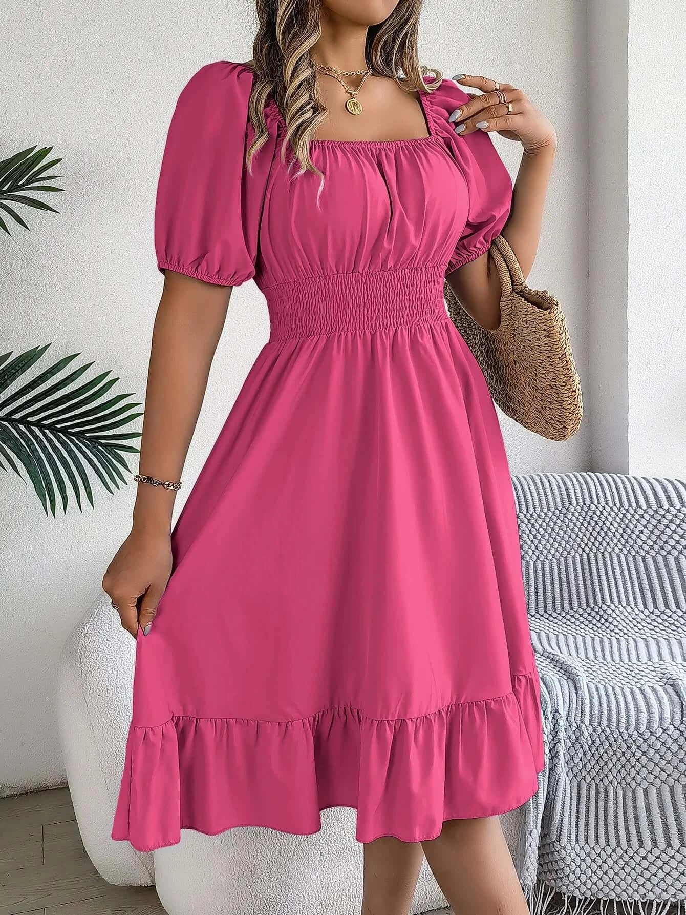 Women’s Summer Casual Square Neck Ruffle Midi Dress